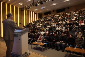 Balıkesir’in Bandırma Üniversitesi’nde düzenli olarak gerçekleştirilen “Rektör-Öğrenci Buluşmaları” kapsamında Rektör Prof. Dr. İsmail Boz; İlahiyat Fakültesi, İletişim Fakültesi ile Sanat, Tasarım ve Mimarlık Fakültesi öğrencilerimizle bir araya geldi. Prof. Dr. Aziz Sancar Konferans Salonu’nda gerçekleştirilen programa öğrenciler yoğun ilgi gösterdi.